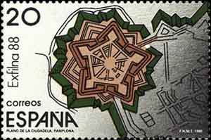 Description | Exposition philatélique nationale "Exfilna 88" - Plan de la citadelle de Pampelune. |