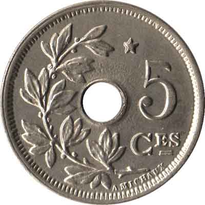 | 5 Centimes - Albert Ier en français, avec étoile