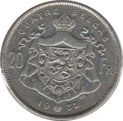 | 20 Francs=4 belga - Albert Ier en français