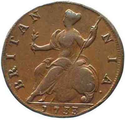| 1 Farthing George II 1ère effigie, cuivre