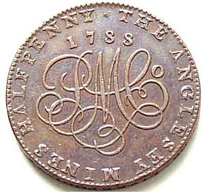 Inscription : THE ANGLESEY MINES HALFPENNY . 1788.