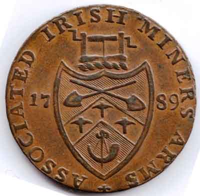 Description | Inscription : CRONEBANE HALFPENNY Inscription : ASSOCIATED IRISH MINERS’ ARMS 17 89 Inscription : DH#44 - PAYABLE IN DUBLIN OR LONDON +.+ DH#44a- PAYABLE IN LANCASTER LONDON OR BRISTOL. DH#44b - PAYABLE IN LANCASTER LONDON OR LIVERPOOL. DH#44c - PAYABLE AT. |