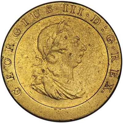 | 2 Pence George III essai, bronze plaqué cuivre