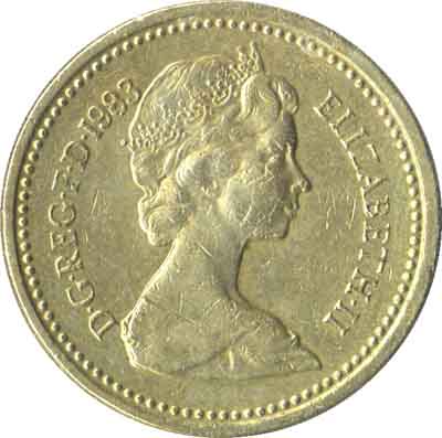 | 1 livre Elizabeth II 2e effigie, armes royales, laiton