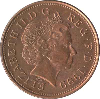 | 1 Penny Elizabeth II 4e effigie, type herse, acier plaqué cuivre