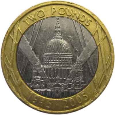 | 2 livres Cathédrale St. Paul de Londres nickel-laiton