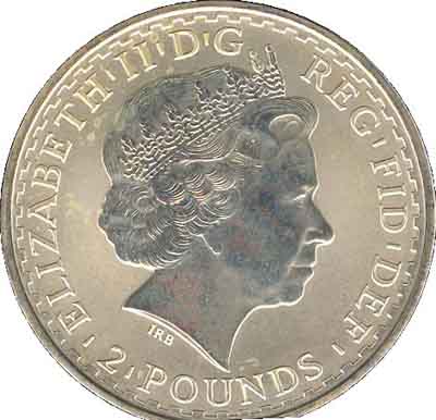 | 2 livres Elizabeth II 4e effigie, Britannia debout, argent 999‰, 1er type
