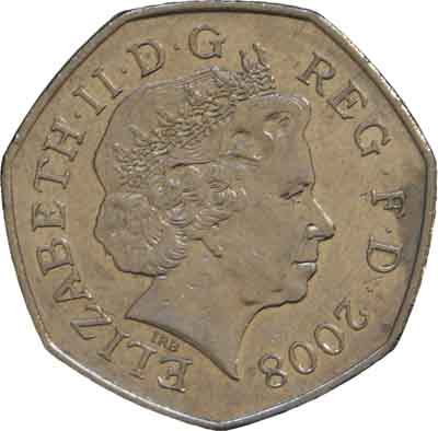 Description | Avers : Effigie droite de la reine Elizabeth II portant le diadème offert en 1893 à la future reine Mary pour son mariage, entourée de l'inscription "ELIZABETH·II·D·G· REG F·D·" et du millésime. Sous l'effigie les initiales "IRB" du graveur Ian Rank-Broadley. Inscription : ELIZABETH·II·D·G REG·F·D·2008 IRB Revers : L'ensemble des pièces de la série représente le blason royal du Royaume-Uni. Le blason est écartelé en quatre parties. En 1 et 4 sont représentés les armoiries de l'Angleterre constitué de trois |