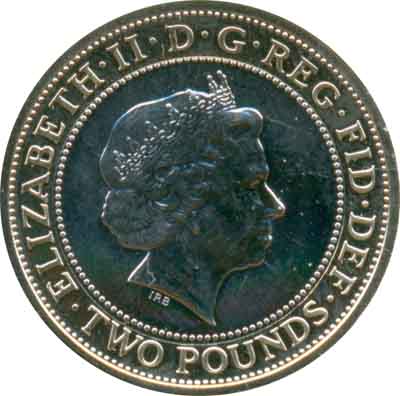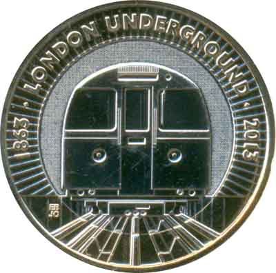 Description | Pièce commémorative : 150e anniversaire de la première mise en service du métro de Londres : Le train. Avers : Effigie droite de la reine Elizabeth II portant le diadème offert en 1893 à la future reine Mary pour son mariage, entourée de l'inscription "ELIZABETH·II·DEI·G·REG·FID·DEF·" et de la valeur faciale "TWO POUNDS". Sous l'effigie les initiales "IRB" du graveur Ian Rank-Broadley. Inscription : ELIZABETH·II·D·G·REG·FID·DEF ·TWO POUNDS· IRB Revers : Un train. Inscription : 1863 · LONDON UNDERGROUND · 20 |