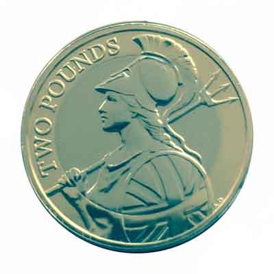 | 2 livres Elizabeth II 4e effigie, Britannia debout, argent 999‰, 2e type