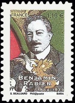 Description | Benjamin Rabier. Les timbres s'exposent au salon Planète timbres 2014. Emis en carnet. 2 bandes de phosphore. |