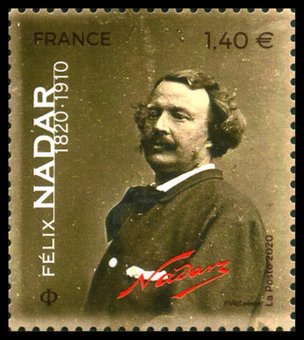Description | Personnalité. Bicentenaire de la naissance de Félix Nadar (1820-1910), romancier et photographe. Profil gauche. En feuillet. |