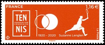 Description | Centenaire de la Fédération française de tennis (1920-2020). Logo du jubilé et silhouette stylisée de Suzanne Lenglen, joueuse de tennis (1899-1938). 2 bandes de phosphore. |