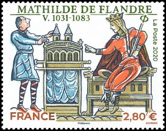 Description | Les grandes heures de l'Histoire de France. Mathilde de Flandre et une maquette de l'abbaye aux Femmes. 2 bandes de phosphore. Emis uniquement en feuillet. |