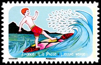 Description | Espace, Soleil, Liberté. Vacances. Surfer sur la vague. 1 bande de phosphore à droite. Validité permanente. Emis en carnet. |