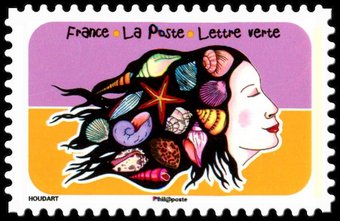 Description | Espace, Soleil, Liberté. Vacances. Coquillages. 1 bande de phosphore à droite. Validité permanente. Emis uniquement en carnet. |