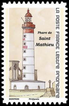 Description | Phares, repères de nos côtes (II). Phare de la pointe Saint-Mathieu. 2 bandes de phosphore. Validité permanente. Emis en carnet. |