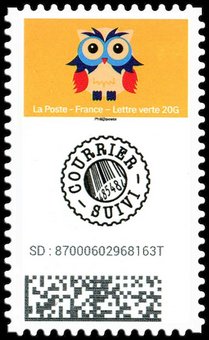 Mon carnet de timbres suivis. Chouette. 1 bande de phosphore à droite. Validité permanente. Emis en carnet autoadhésif.