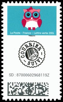 Mon carnet de timbres suivis. Chouette. 1 bande de phosphore à droite. Validité permanente. Emis en carnet autoadhésif.