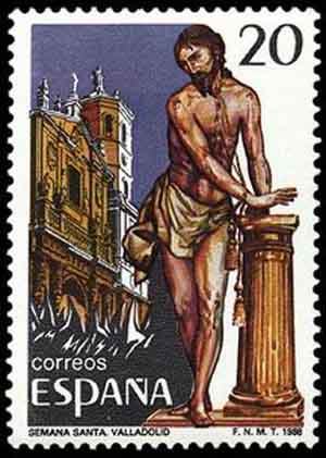 Description | Grandes fêtes populaires espagnoles - Semaine Sainte, à Valladolid - Vue de la cathédrale et statue "Jésus à la colonne". |