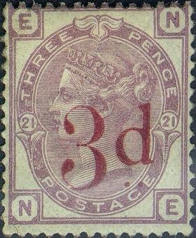 Description | Victoria, type "c". Types de 1873 avec valeur en surcharge carmin. Filigrane couronne. |