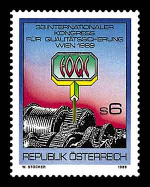 Description | 33° Congrès de l'E.O.Q.C., Organisation européenne du contrôle de la qualité, à Vienne - Emblème et engrenage |