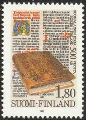Description | 500° anniversaire de la première impression d'un livre en Finlande - Page et vue du "Missale Aboense" |