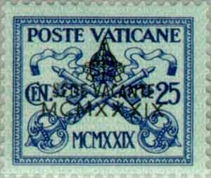 Description | Timbre de 1929 - Armoiries pontificales - Surcharge "SEDE VACANTE". |
