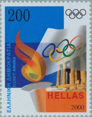 Description | Jeux olympiques de Sydney. Émission commune avec l'Australie. Drapeau olympique, flamme et Parthénon. |