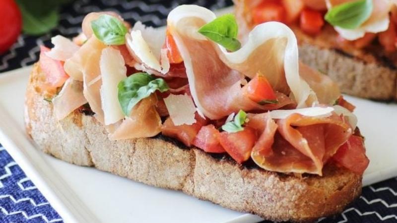 Bruschetta au jambon cru, tomates séchées et mozzarella