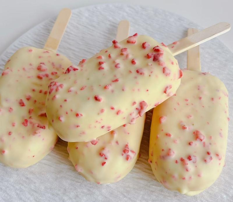 4. Démouler les glaces, les enrober dans le chocolat fondu, puis laisser figer.