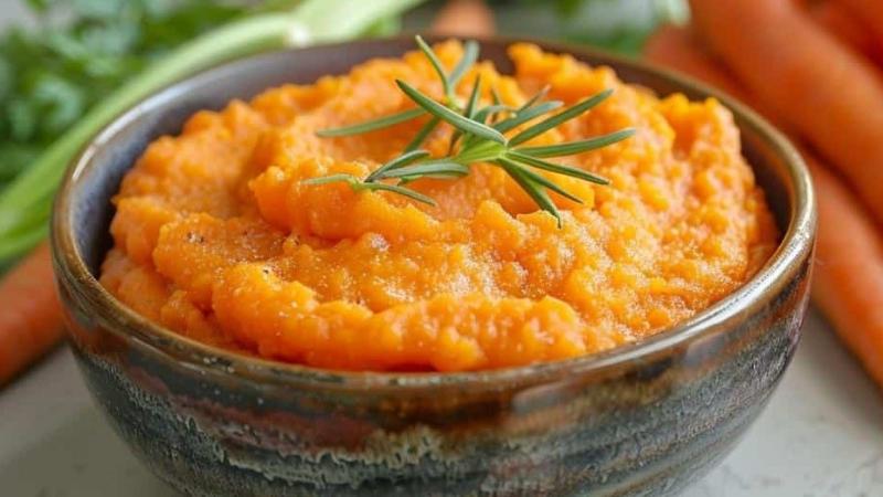 Purée de patates douces au lait de coco et carottes